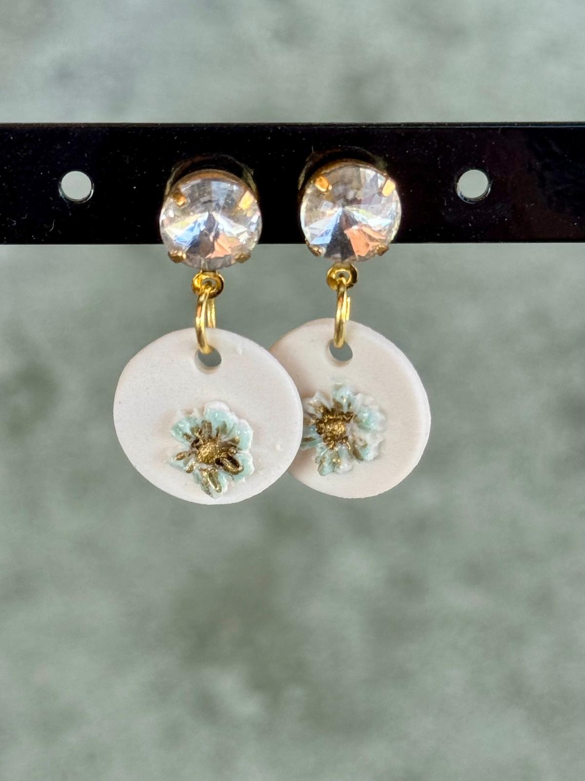 Oorring porselein cirkel met bloem