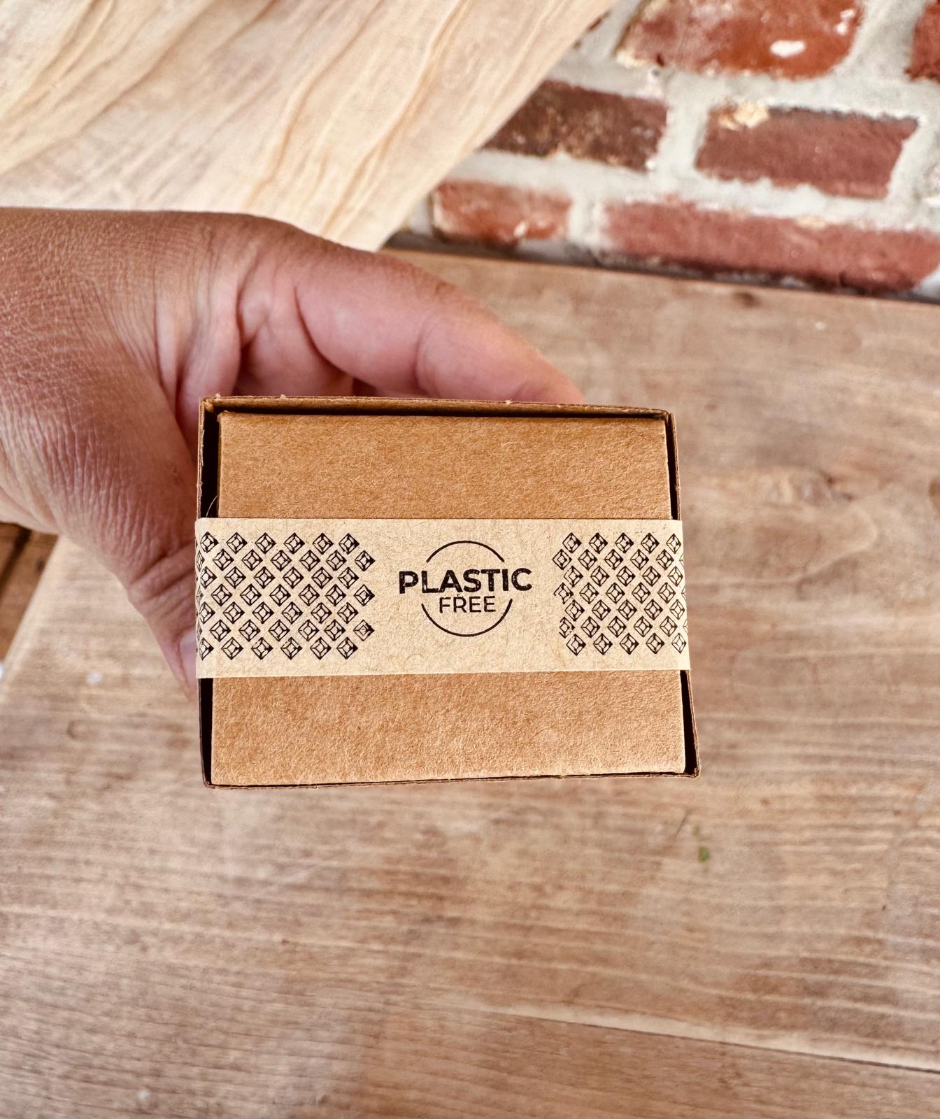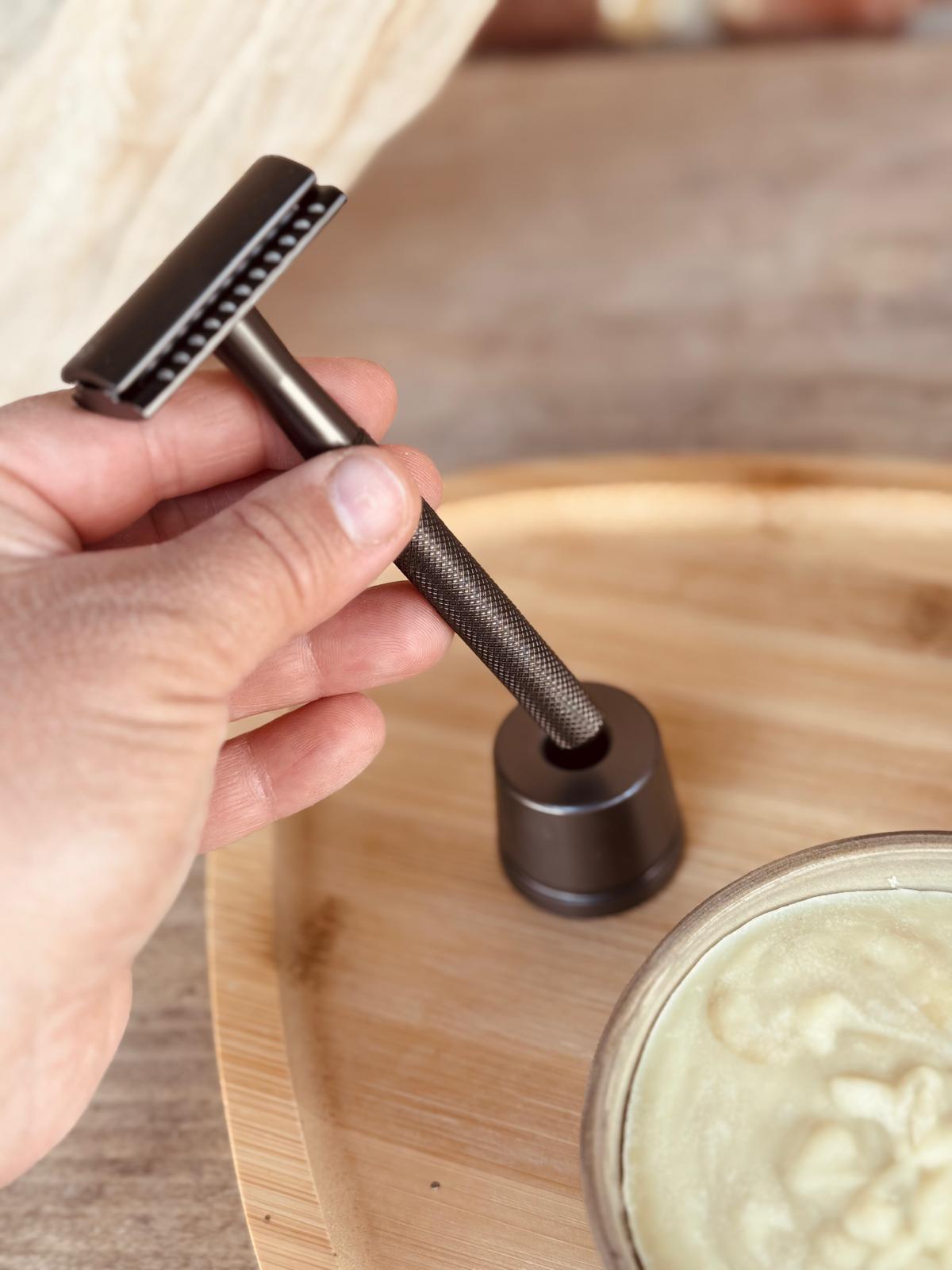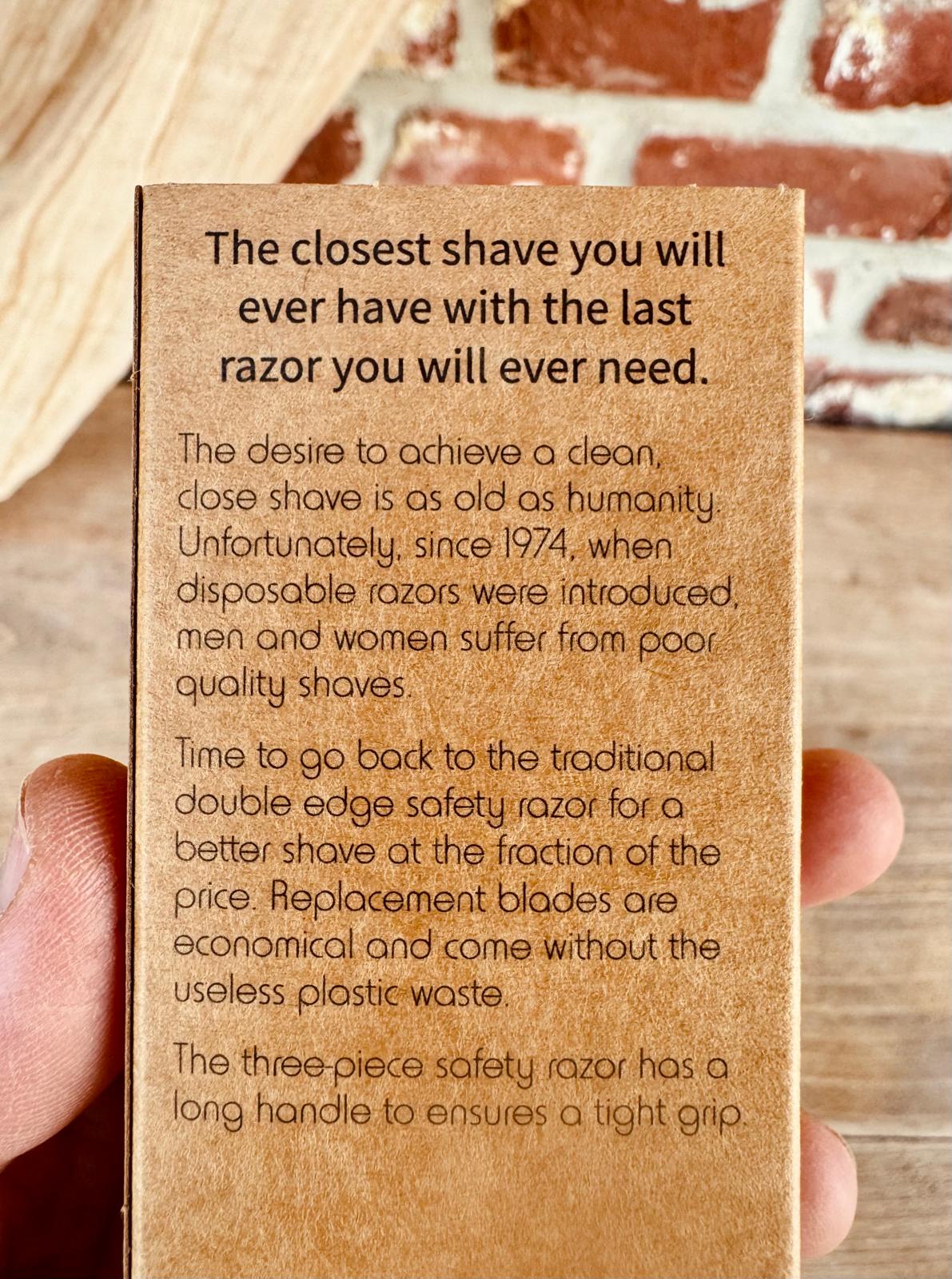 Het scheermes heeft een handig antislib handvat en is 100% plasticfree, ook de verpakking.